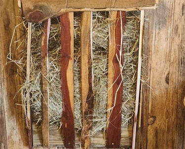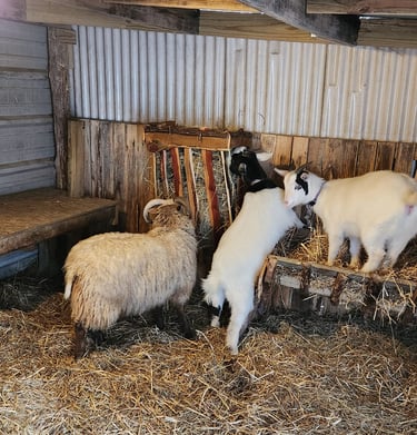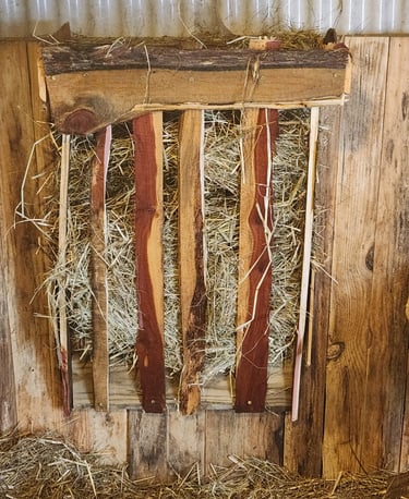 The hay manger became a goat bed, so a little creativity became the order of the day! There is now a hay rack that keeps the hay clean and just for eating. No goats allowed!