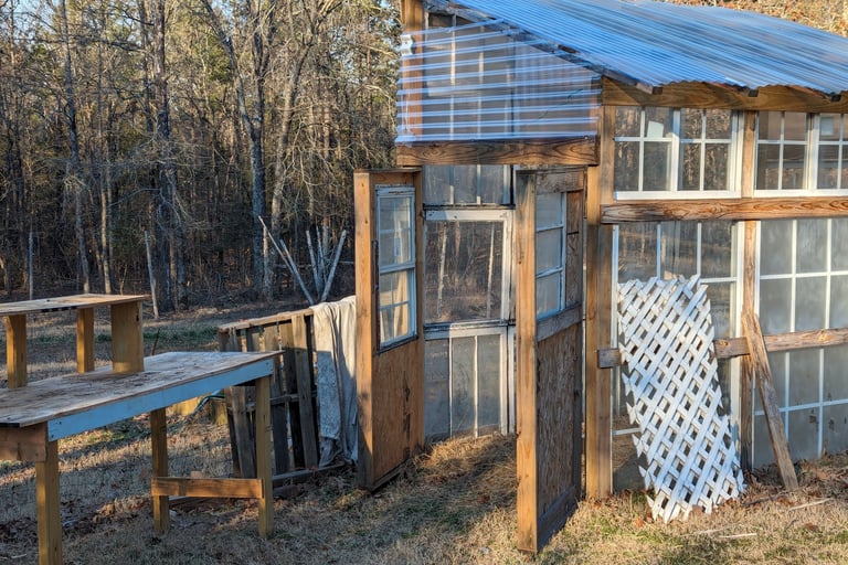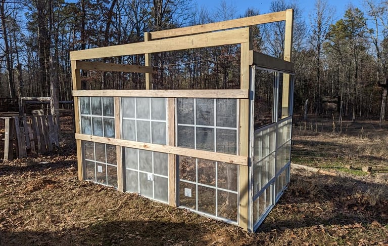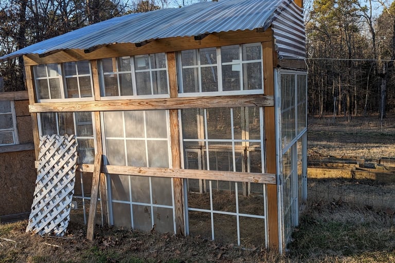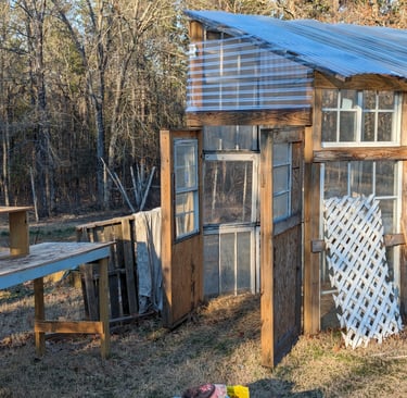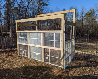 As you can tell, it has had quite a bit more done to it! We still need to paint it, and since these last two photos the wind took one of the center panels off and we replaced it with tin. Progress continues!